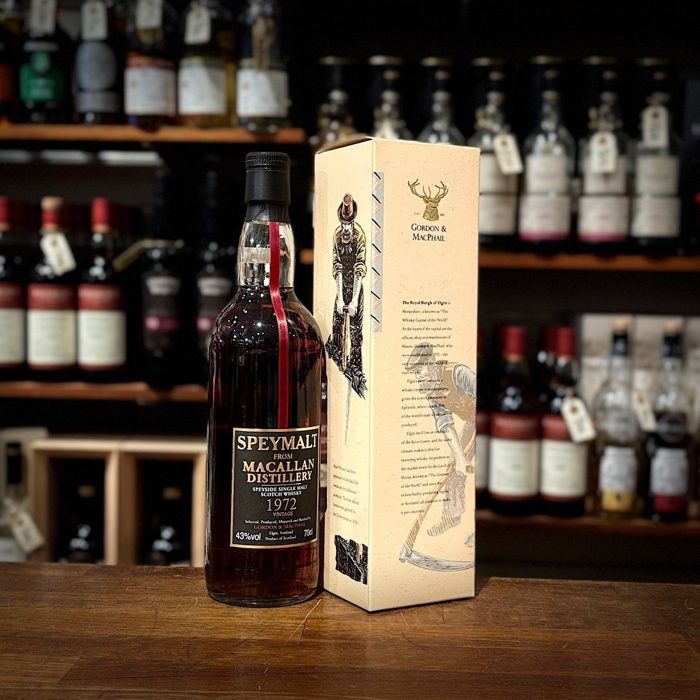 A true legend in the whisky world: Macallan 1972 Vintage Speyside Single Malt Whisky, bottled in the Speymalt series by Gordon & Macphail and matured in a 1st Fill Sherry Cask. This is an exclusive vintage Macallan from a golden era in Speyside – created for collectors, investors and passionate connoisseurs of classic sherry-matured single malt whisky.