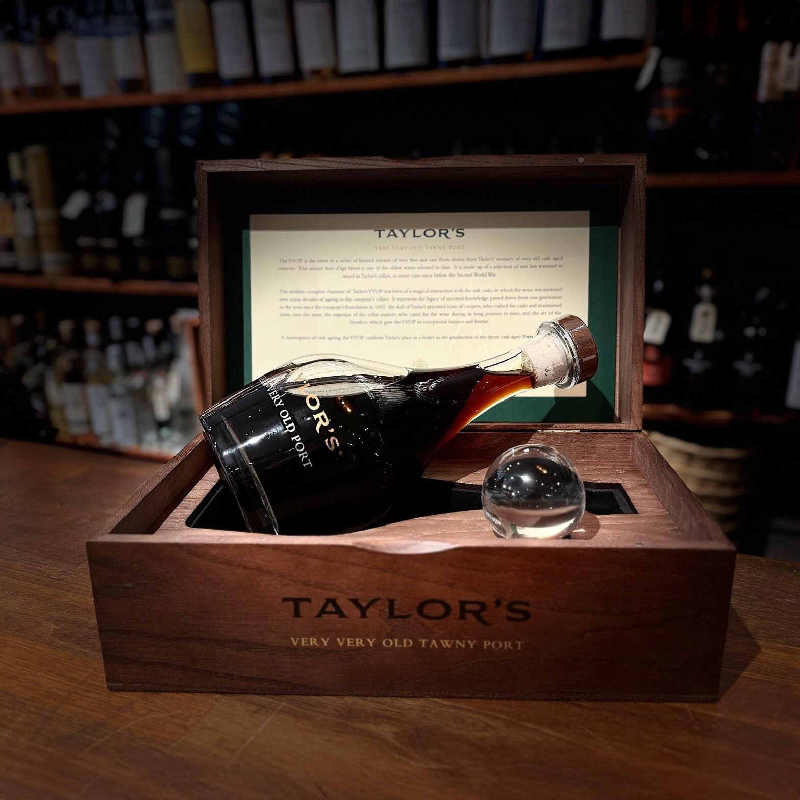 The VVOP is the lastest in a series of Limited Releases of very fine and rare Ports frawn from Taylors tresure of very old cask-aged reserves.