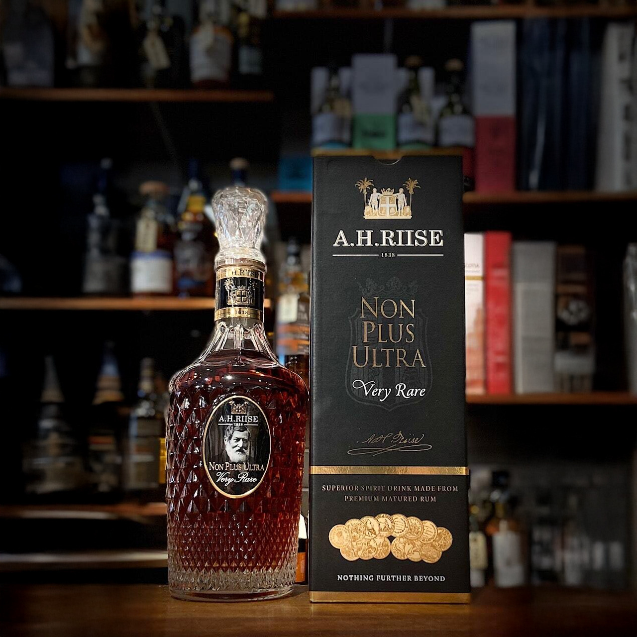A. H. Riise Non Plus Ultra “Meget sjælden” findes ligeledes på grænsen mellem det kendte og ukendte; kun de allerbedste dråber fra lagrede romfade bruges til at skabe denne ultimative spiritus fra A.H. Riise.
